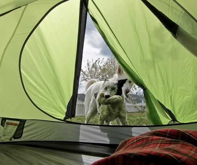 Luonnollisesti voit valita vain telttailupaikkoja, joihin koirat ovat sallittuja tuoda. Mieti tätä myös koirasi kannalta - onko lähistöllä pesupaikkaa, johon koirat ovat sallittuja? Onko koirille tarpeeksi tilaa olla kaukana muista koirista, tai tilaa leikkiä muiden koirien kanssa? Voitko käydä koiran kanssa rauhassa kävelyllä telttailualueen lähistöllä? Nämä eivät ole aina itsestäänselvyyksiä, tutki siis ennalta esim. eri nettisivujen kautta paikkasuosituksista.