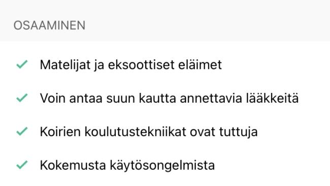 Vielä yksi pro tip: Sisällytä tekstiisi paljon avainsanoja, kuten ‘lemmikinhoitaja’, ‘lemmikinhoito’, ‘koiran ulkoiluttaja’ jne.