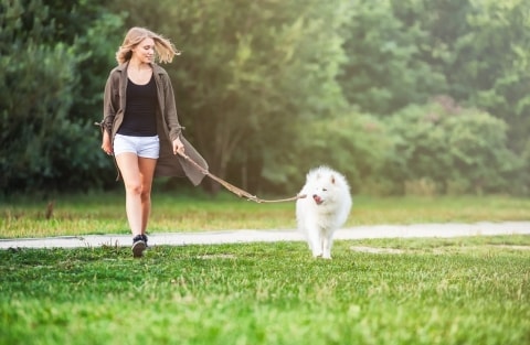 faites toujours attention à votre chien et à l'environnement proche pendant les promenades